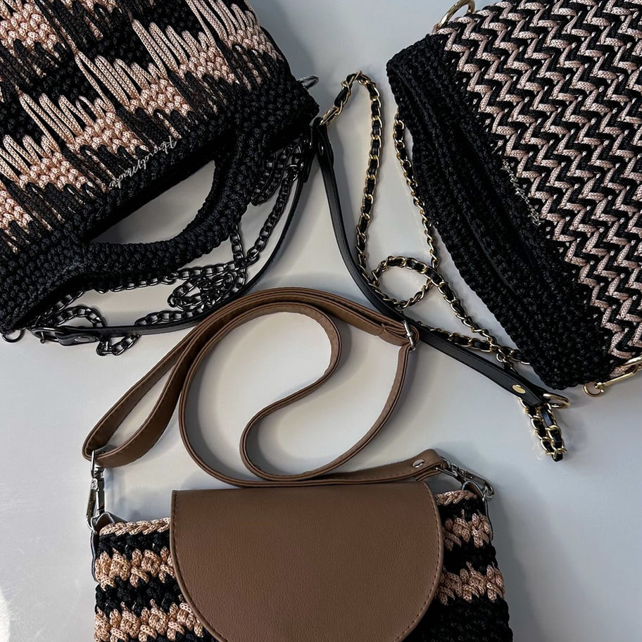 Handmade crochet bags made from durable, lightweight polyester cord.